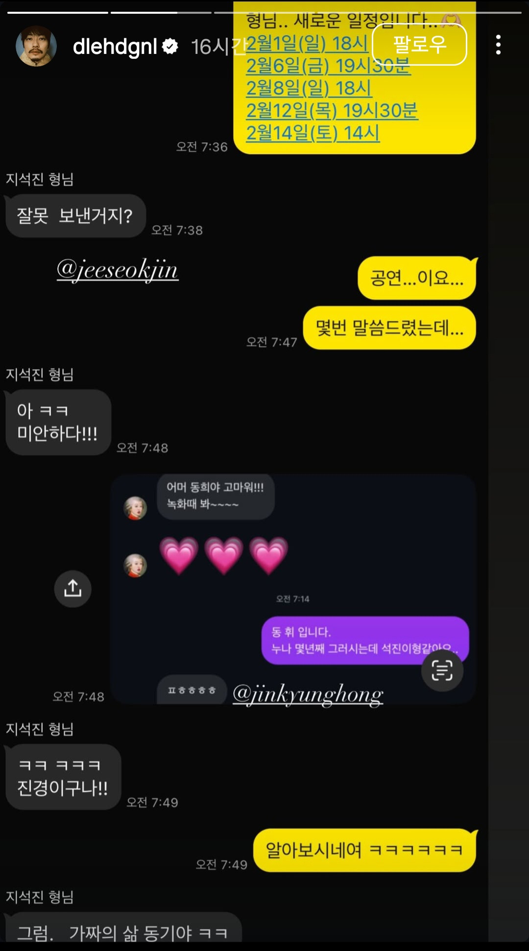 [SNS]이동휘가 인스스에 올린 지석진과의 카톡ㅋㅋㅋ 작성자서스날|작성시간26.01.23|조회수11,223 목록 댓글 11 글자크기 작게가 글자크기 크게가 다음검색 현재 게시글 추가 기능 열기 북마크 공유하기 신고 센터로 신고 댓글 댓글 11 댓글쓰기 답글쓰기 댓글 리스트 작성자CokeR | 작성시간 26.01.23 ㅋㅋㅋㅋㅋㅋㅋㅋ 음성지원된다 ㅋㅋㅋ 작성자닥터 둠 | 작성시간 26.01.23 ㅋㅋㅋㅋㅋㅋㅋㅌ 작성자부산의전설77 | 작성시간 26.01.24 ㅋㅋㅋㅋㅋㅋㅋㅋㅋ 작성자tnatropmI | 작성시간 26.01.24 ㅋㅋㅋㅋㅋㅋㅋㅋㅋㅋ 작성자아저씨 | 작성시간 26.01.24 ㅋㅋㅋ 댓글 전체보기