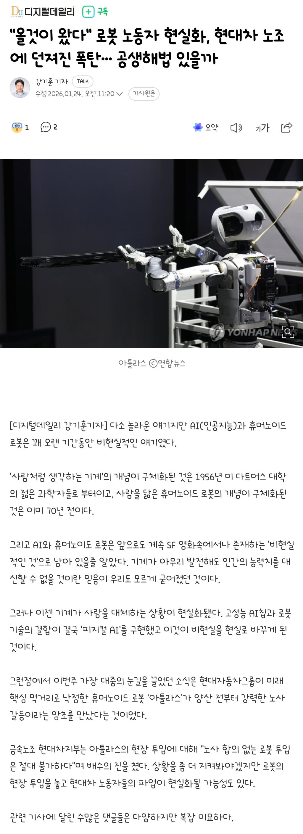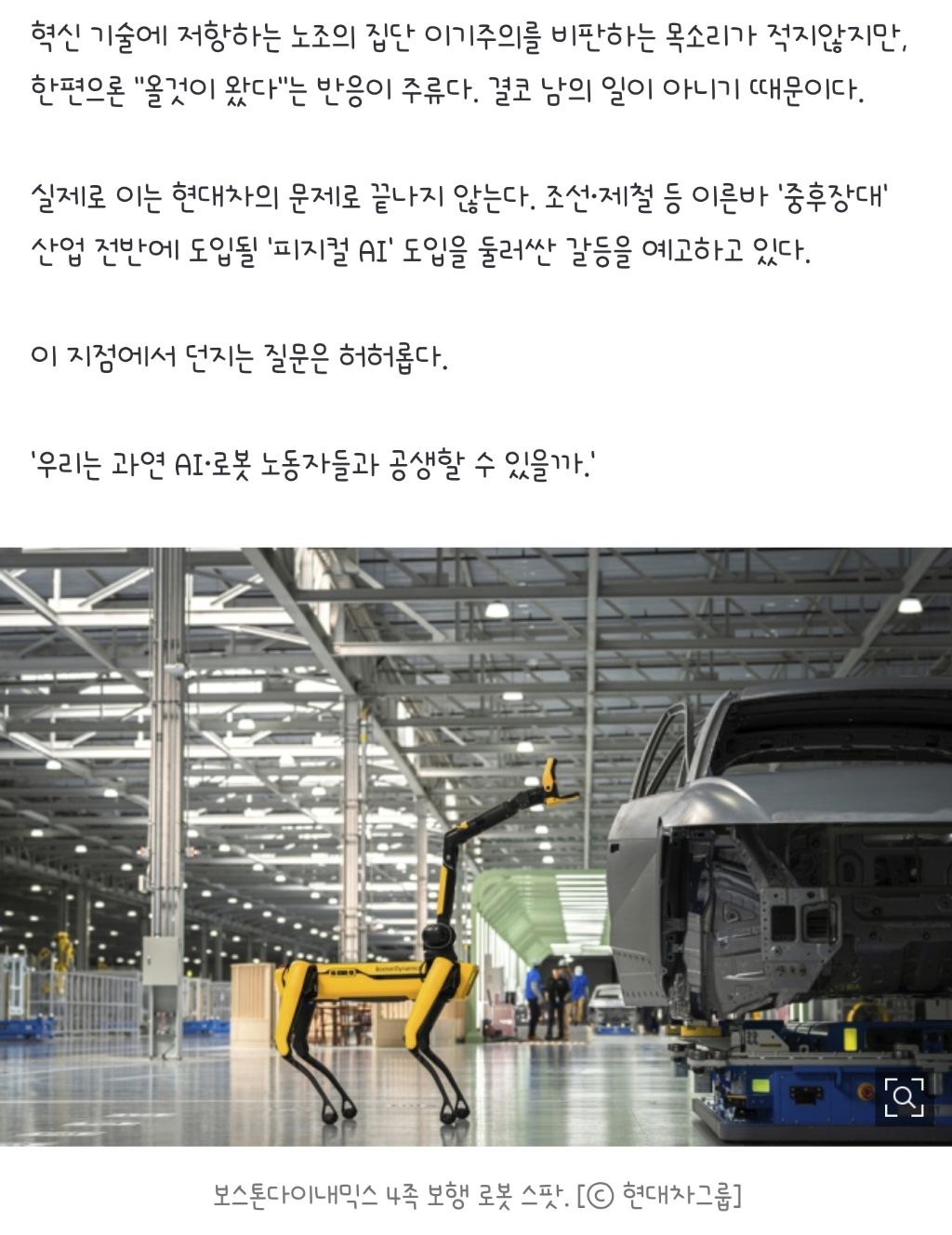 작성자병원서놀던형 작성시간 26.01.24 로봇이랑 ai이슈는 인류의 이슈인데 노조를 끼워서 이야기하는 듯한 느낌이네요.