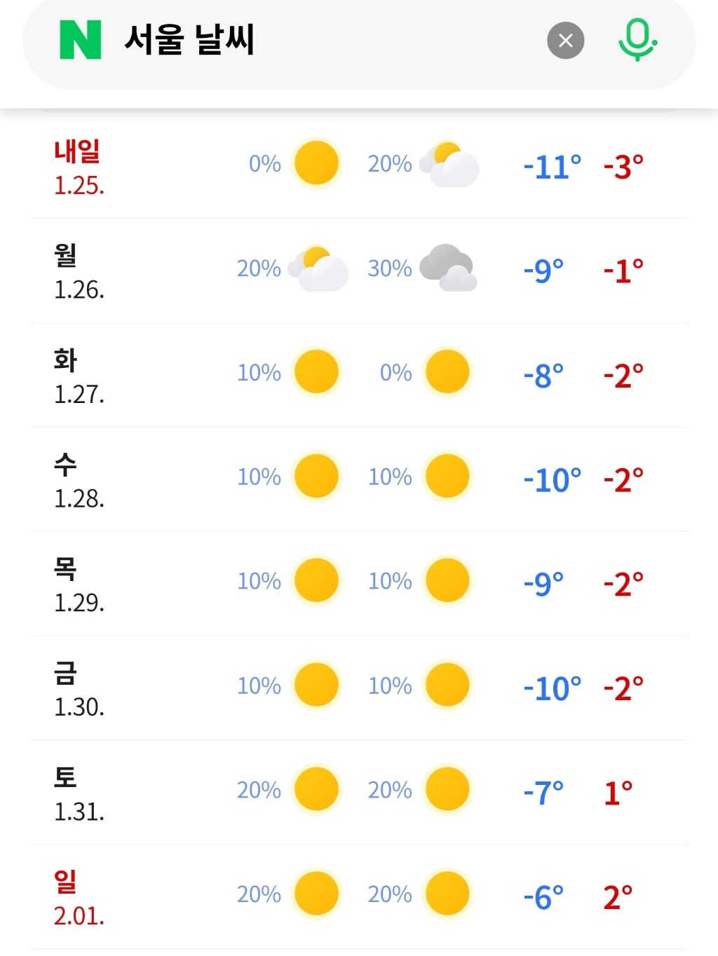 [정보]다음주 서울/부산 날씨 작성자한교동|작성시간26.01.24|조회수5,315 목록 댓글 7 글자크기 작게가 글자크기 크게가 다음검색 현재 게시글 추가 기능 열기 북마크 공유하기 신고 센터로 신고 댓글 댓글 7 댓글쓰기 답글쓰기 댓글 리스트 작성자Andrea Pirlo 21 | 작성시간 26.01.24 작성자채화 | 작성시간 26.01.24 살려줘..... 작성자김현주 | 작성시간 26.01.24 부산은 춥지가 않음 눈구경 한번 못하네 작성자정예린 | 작성시간 26.01.24 ㄷㄷㄷㅈ 작성자아이스핫초코 | 작성시간 26.01.24 다다음주는 되어야 풀리날 댓글 전체보기