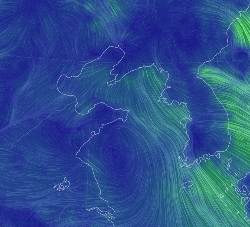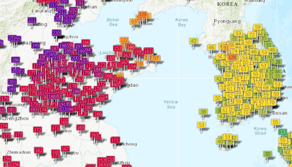 시베리아의 찬 공기로 중국의 미세 먼지를 막아주는 중