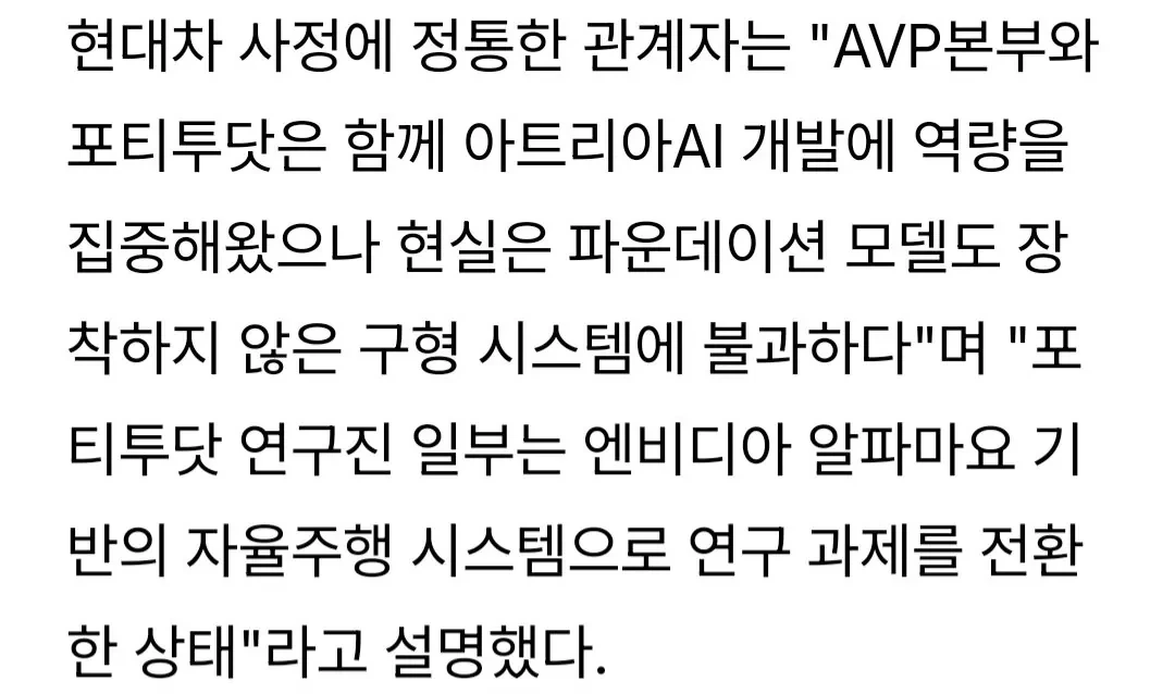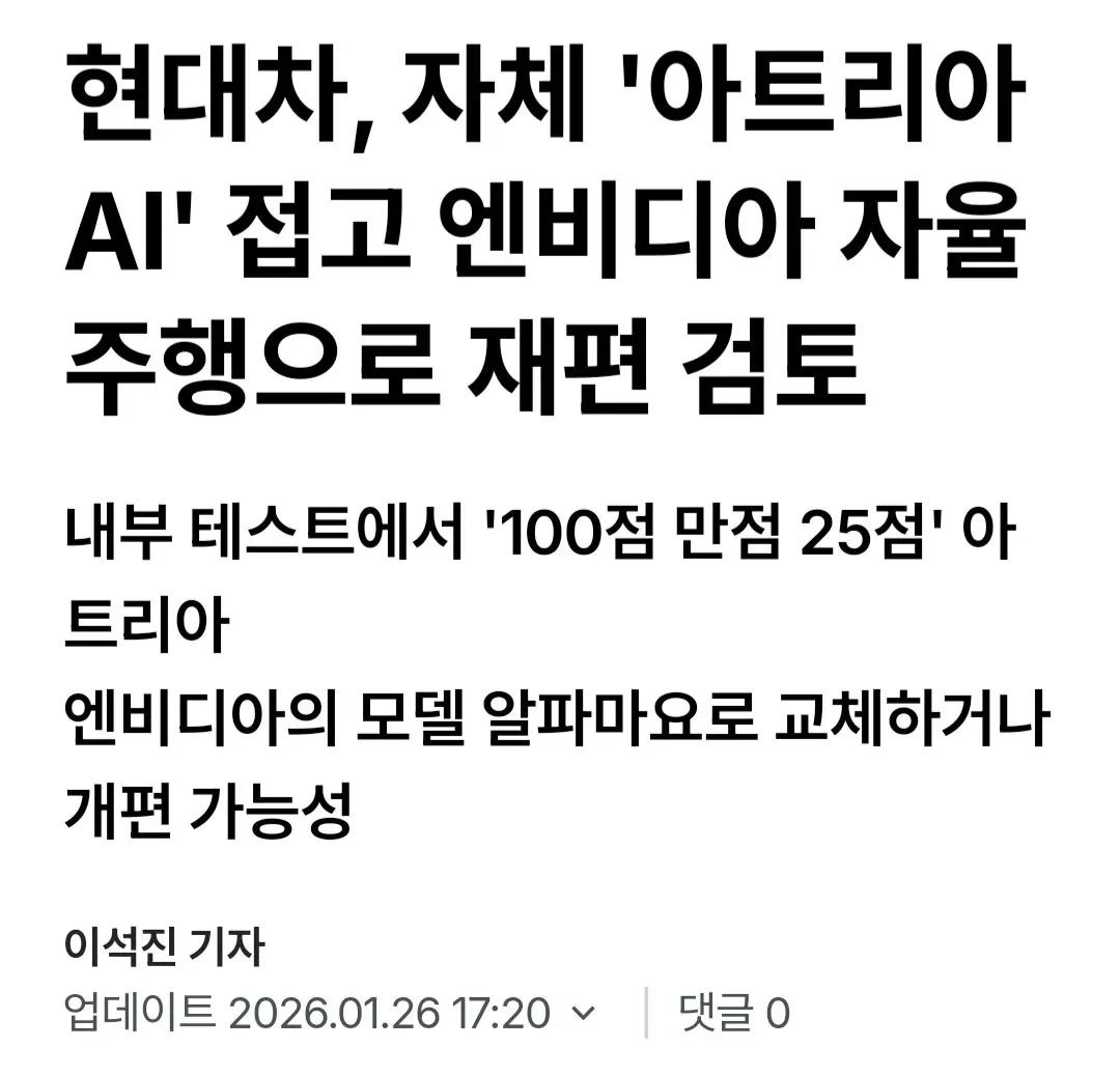 답댓글 작성자크로스가크로스올리네 작성시간 26.01.26 운중천고라니 fsd도 도입 초기엔 인식이나 이런게 안 좋았고 패치하면서 나아졌다는데 아트리아는 초기 모델이 얼마나 후졌으면 실험도 못할 정도였는지...
