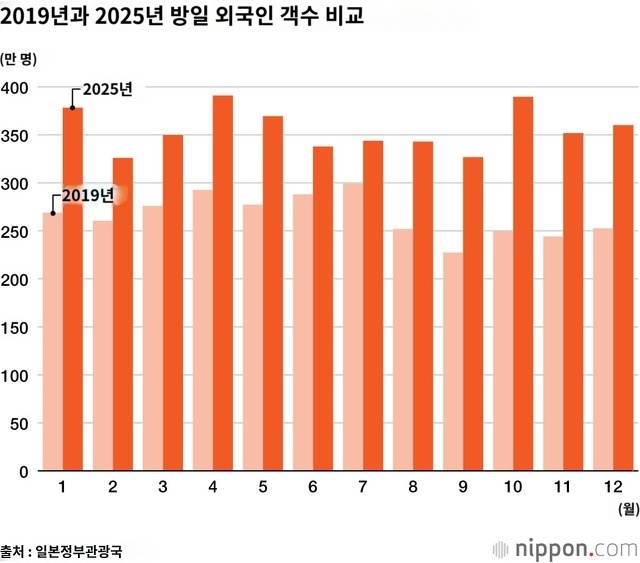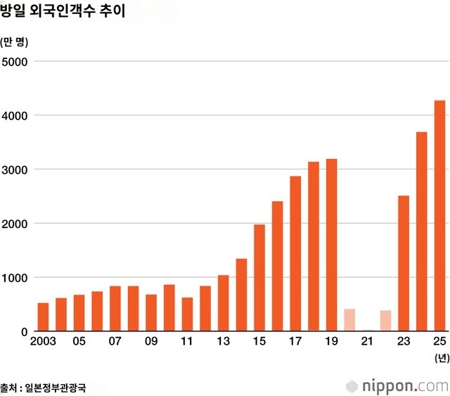 [정보]일본 방문객 나라별 순위 작성자한교동|작성시간26.01.27|조회수2,893 목록 댓글 6 글자크기 작게가 글자크기 크게가 2025년 방일 외국인 수4,268만명1)한국: 945만명2)중국: 909만명3)대만: 676만명4)미국: 330만명5)홍콩: 251만명6)태국: 123만명*홍콩은 특별행정구(SAR) 분류 다음검색 현재 게시글 추가 기능 열기 북마크 공유하기 신고 센터로 신고 댓글 댓글 6 댓글쓰기 답글쓰기 댓글 리스트 작성자김수겸 | 작성시간 26.01.27 가깝고 분위기좋고 해외여행으로 일본이 제일 접근성이 좋긴하지 작성자neworl | 작성시간 26.01.27 일본 그렇게 싫어한다 해도 가장 사랑하는나라 작성자H_Crespo | 작성시간 26.01.27 헐 한국이 1위라니 ㄷㄷ 작성자디자이너 | 작성시간 26.01.27 인구대비보면 우리보다 대만이 더 많이가네 ㅋㅋㅋㅋㅋㅋㅋㅋㅋ 작성자용비어천가 | 작성시간 26.01.28 일본 방문객 수 댓글 전체보기