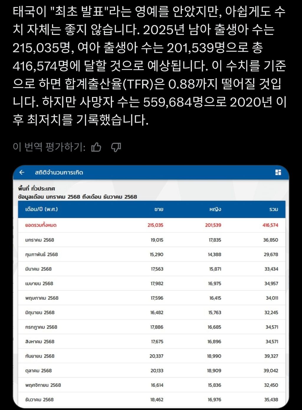2025년 태국 잠정 출산율