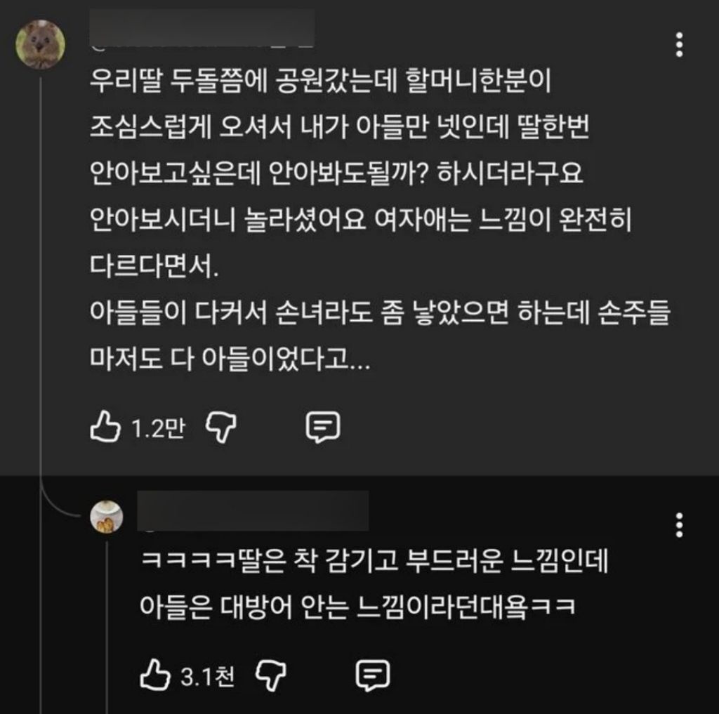 작성자HB Style 작성시간 26.01.28 첫째 이제 44개월, 둘째 21개월 키우는 아들 둘 아빠입니다. 저희 첫째 100일 지났을 때 몸무게가 10킬로가 넘는 초우량아였고 (현재는 21~22킬로 정도 될껍니다 그래도 많이 평준화됐죠) 둘째는 몸을 어찌나 잘 쓰는지...나중에 둘 다 운동시키라는 소릴 많이 듣는데 대방어 소리 너무 공감되네요 ㅎㅎㅎㅎ...