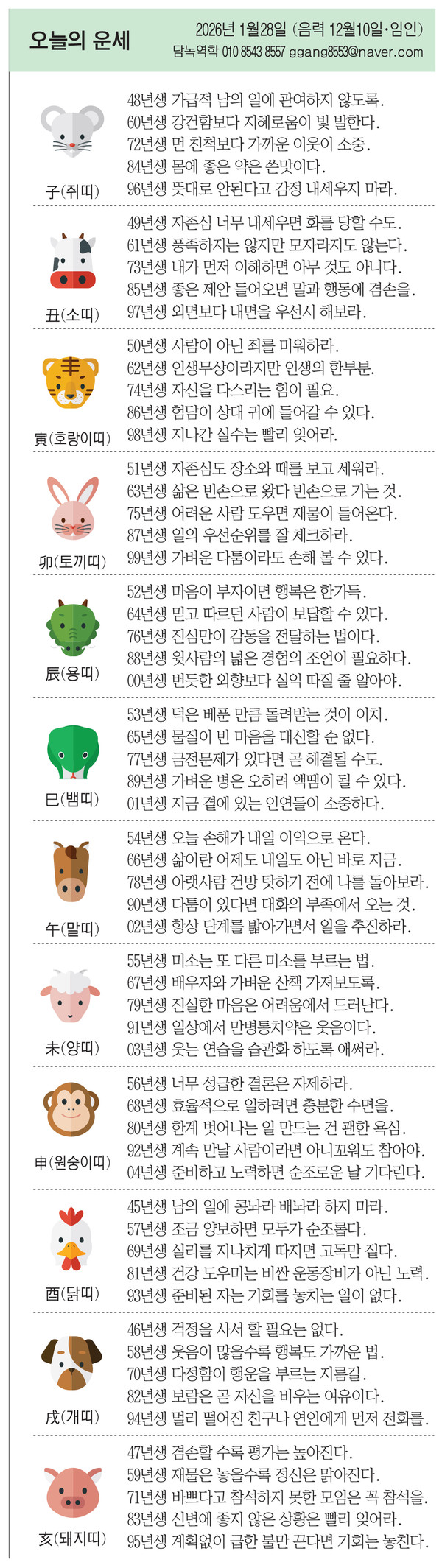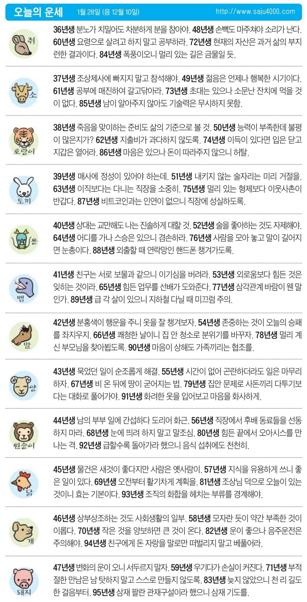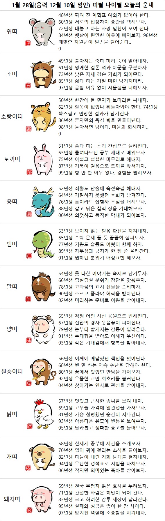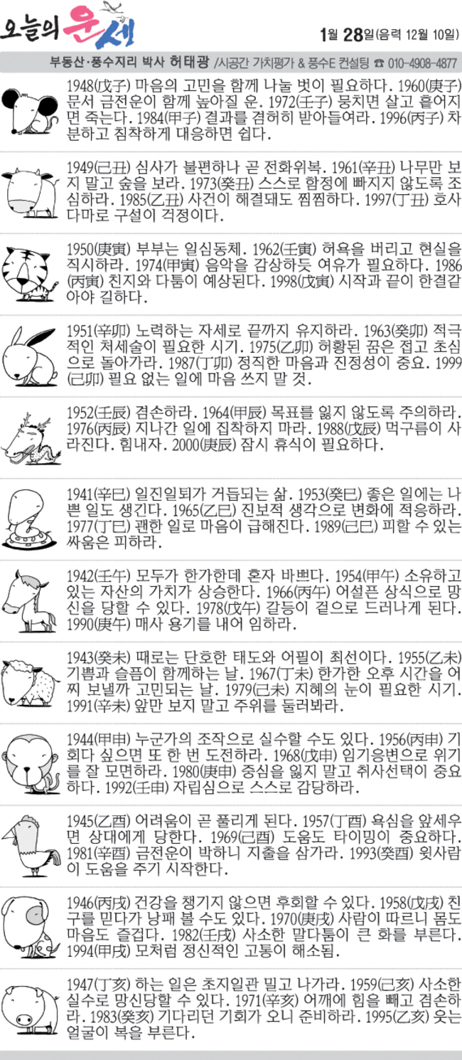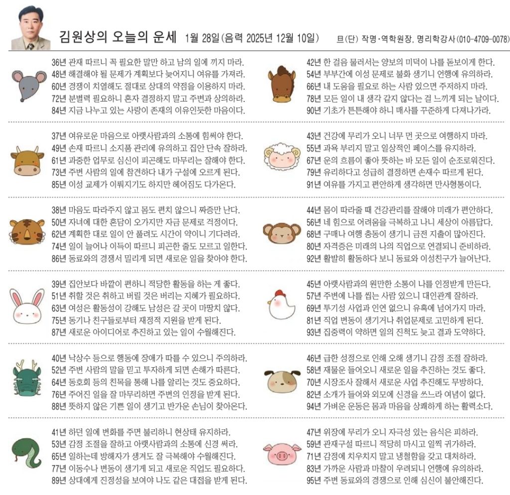 1월 28일 수요일 오늘의 운세 작성자난누군가또여긴어딘가.|작성시간26.01.28|조회수3,400 목록 댓글 20 글자크기 작게가 글자크기 크게가 다음검색 현재 게시글 추가 기능 열기 북마크 공유하기 신고 센터로 신고 댓글 댓글 20 댓글쓰기 답글쓰기 댓글 리스트 작성자Andrea Pirlo 21 | 작성시간 26.01.28 복채요! 작성자수원블루맨1 | 작성시간 26.01.28 복채요 작성자텔피 | 작성시간 26.01.28 복채요! 작성자Amier | 작성시간 26.01.28 복채요 작성자한화 이글스 | 작성시간 26.01.28 복채요 댓글 전체보기