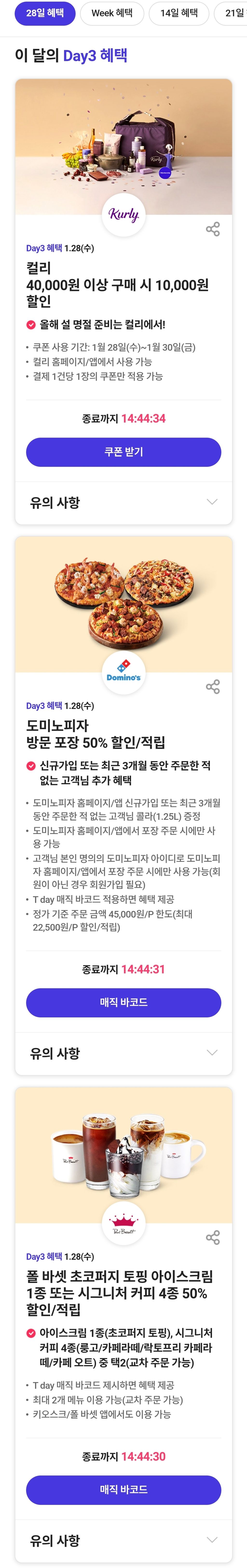[정보]오늘자 SKT 혜택 작성자한로로로|작성시간26.01.28|조회수3,653 목록 댓글 1 글자크기 작게가 글자크기 크게가 다음검색 현재 게시글 추가 기능 열기 북마크 공유하기 신고 센터로 신고 댓글 댓글 1 댓글쓰기 답글쓰기 댓글 리스트 작성자PEAKY BLINDERS | 작성시간 26.01.28 오늘은 피자 먹는 날! 댓글 전체보기