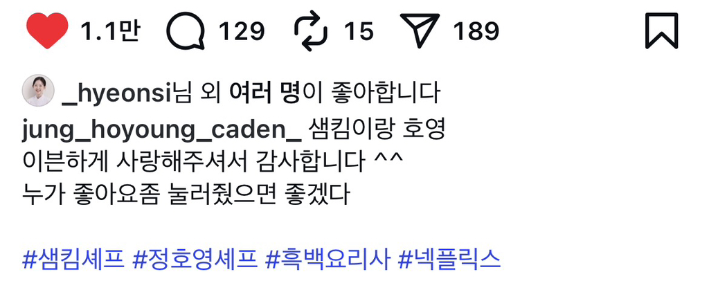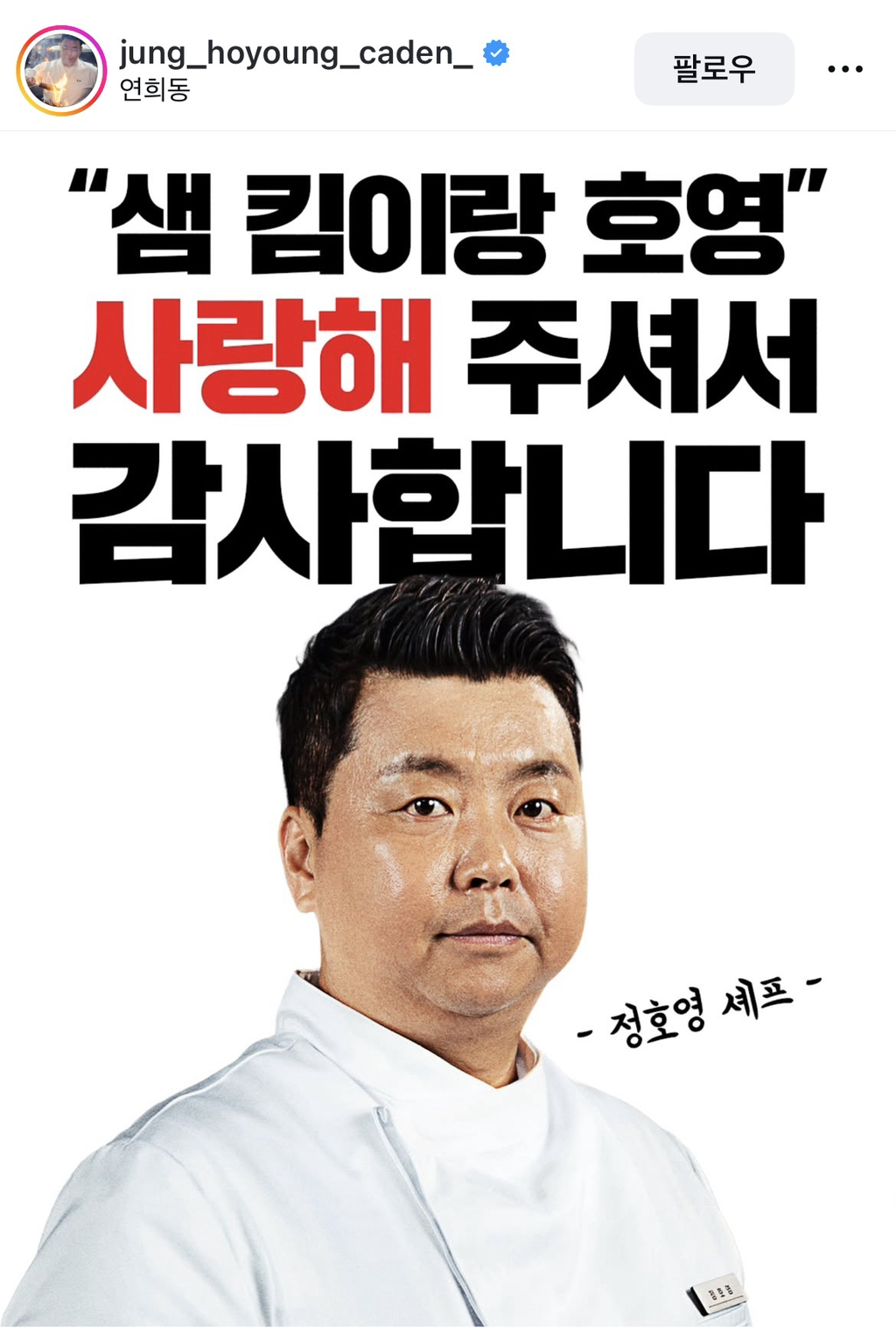 [SNS]흑백요리사2) 본인 유행어 야무지게 쓰고 있는 정호영 셰프 작성자인천제로콜라|작성시간26.01.28|조회수11,660 목록 댓글 7 글자크기 작게가 글자크기 크게가 그리고 댓글김풍X손종원 커플을 위협하는정호영X샘킴의 달달함ㅋㅋㅋㅋ 다음검색 현재 게시글 추가 기능 열기 북마크 공유하기 신고 센터로 신고 댓글 댓글 7 댓글쓰기 답글쓰기 댓글 리스트 작성자소녀시대 윤아 | 작성시간 26.01.28 냉부에서 누구의 누 할때 개웃겼는데 ㅋㅋㅋㅋㅋㅋㅋ 작성자버츠비 | 작성시간 26.01.28 방송잘하심ㅋㅋ정지선 셰프 유튜브나온거보니깐 프로방송러임ㅋㅋ 작성자지져스 | 작성시간 26.01.28 누가 잡고있었으면 좋겠다 작성자김재환 | 작성시간 26.01.28 ㅋㅋㅋㅋㅋㅋㅋㅋㅋㅋㅋㅋㅋㅋㅋ 작성자정예린 | 작성시간 26.01.28 ㅋㅋㅋㅋㅋ 댓글 전체보기