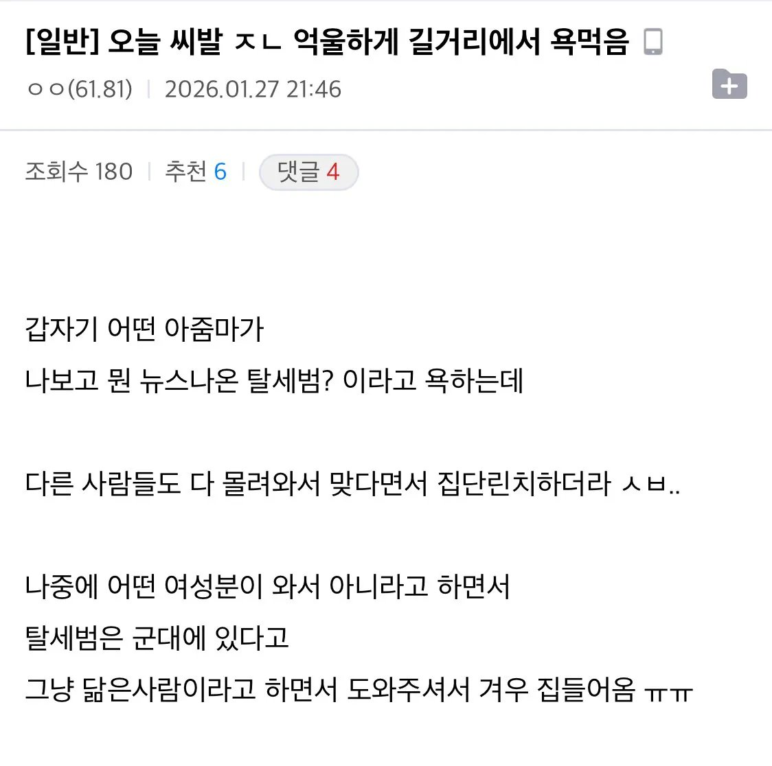길에서 억울한 오해를 당한 디씨인.jpg 작성자홀란드샴푸|작성시간26.01.28|조회수7,495 목록 댓글 7 글자크기 작게가 글자크기 크게가 출처 : 허언증갤 다음검색 현재 게시글 추가 기능 열기 북마크 공유하기 신고 센터로 신고 댓글 댓글 7 댓글쓰기 답글쓰기 댓글 리스트 작성자롭슨 | 작성시간 26.01.28 ㅋㅋㅋㅋㅋㅋㅋㅋㅋㅋㅋㅋ 작성자랩퍼싸박 | 작성시간 26.01.28 차은우 ㅋㅋㅋㅋㅋ 작성자광배근 | 작성시간 26.01.28 ㅋㅋㅋㅋ200억좌 작성자프랭크 램파드 | 작성시간 26.01.28 ㅋㅋㅋㅋㅋㅋㅋ 작성자Liverpool FC | 작성시간 26.01.28 뭔말인가 했내 ㅋㅋ 댓글 전체보기