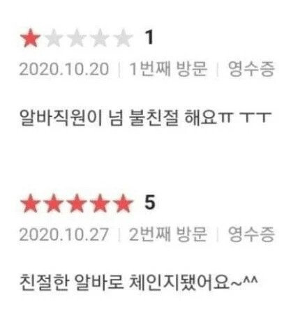 [유머]어떠한 악의도 없이 별점 1점 준 고객 ㄷㄷ 작성자대한민국이 무너지고 있다.|작성시간26.01.29|조회수5,282 목록 댓글 2 글자크기 작게가 글자크기 크게가 다음검색 현재 게시글 추가 기능 열기 북마크 공유하기 신고 센터로 신고 댓글 댓글 2 댓글쓰기 답글쓰기 댓글 리스트 작성자똘깅 | 작성시간 26.01.29 ㅋㅋㅋㅋㅋㅋㅋ 작성자Noel Gallagher | 작성시간 26.01.29 진심어린 리뷰였구나 댓글 전체보기
