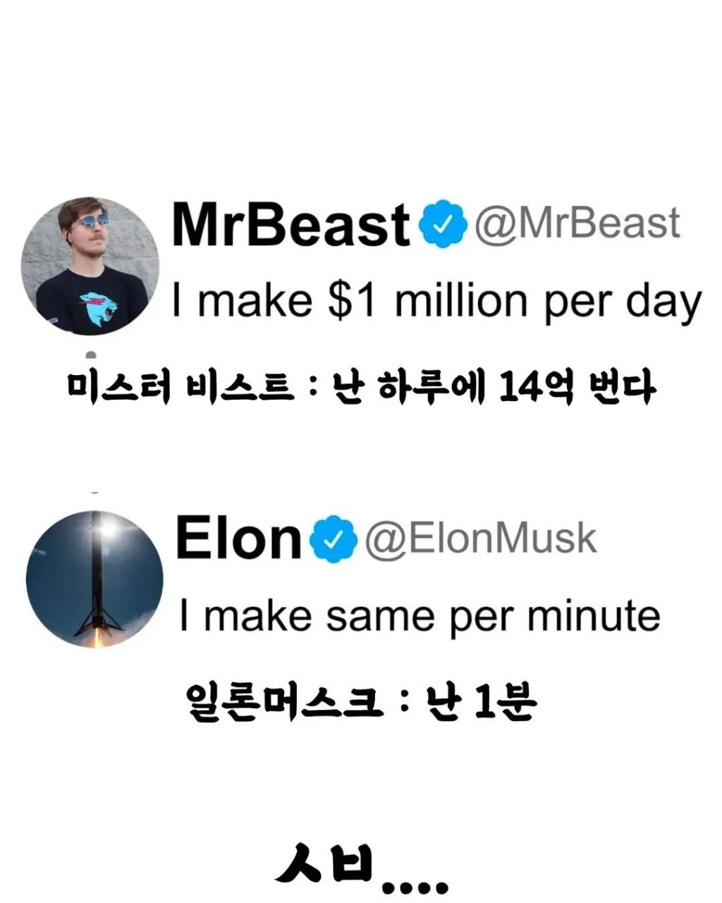 [SNS]나 하루에 14억 번다 작성자맨소래담|작성시간26.01.29|조회수20,056 목록 댓글 9 글자크기 작게가 글자크기 크게가 다음검색 현재 게시글 추가 기능 열기 북마크 공유하기 신고 센터로 신고 댓글 댓글 9 댓글쓰기 답글쓰기 댓글 리스트 작성자Noel Gallagher | 작성시간 26.01.29 실례가 안 된다면 답댓글 작성자엄지공주 오무지 | 작성시간 26.01.29 아이스크림 하나만 사주십쇼 작성자프랭크 램파드 | 작성시간 26.01.29 머 선생님 저에게 5분만 주십쇼 작성자이라또 | 작성시간 26.01.29 일론머스크는 오히려 안부럽네 ㅋㅋㅋㅋㅋㅋㅋㅋㅋ 작성자피버노바 | 작성시간 26.01.29 미스터 비스트도 어마어마하네 ㄷㄷ 댓글 전체보기