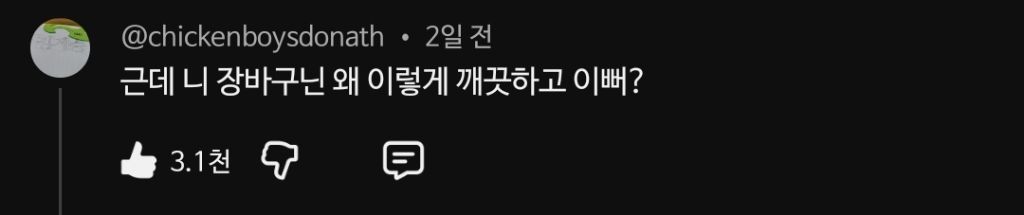 손님이 20분 동안 계속 매장만 돌길래 작성자러바오|작성시간26.01.30|조회수42,996 목록 댓글 2 글자크기 작게가 글자크기 크게가 다음검색 현재 게시글 추가 기능 열기 북마크 공유하기 신고 센터로 신고 댓글 댓글 2 댓글쓰기 답글쓰기 댓글 리스트 작성자정예린 | 작성시간 26.01.30 으아 ㄷㄷ 작성자이나경 | 작성시간 26.01.30 헉 댓글 전체보기