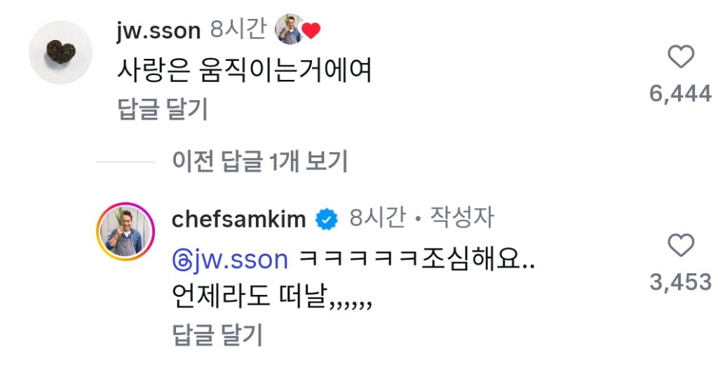 냉부 아닌 환승연애가 돼서 씁쓸한 샘킴ㅋㅋㅋ 작성자러바오|작성시간26.01.30|조회수7,209 목록 댓글 9 글자크기 작게가 글자크기 크게가 다음검색 현재 게시글 추가 기능 열기 북마크 공유하기 신고 센터로 신고 댓글 댓글 9 댓글쓰기 답글쓰기 댓글 리스트 작성자tnatropmI | 작성시간 26.01.30 ㅋㅋㅋㅋㅋㅋㅋㅋ 작성자즐거운세상 | 작성시간 26.01.30 ㅋㅋㅋㅋㅋㅋㅋㅋ 작성자The theatre of dreams | 작성시간 26.01.30 ㅋㅋㅋㅋㅋㅋㅋㅋ 작성자정예린 | 작성시간 26.01.30 ㅋㅋㅋㅋ 작성자장cod | 작성시간 26.01.31 ㅋㅋㅋㅋㄱㅋㅋㅋㅋ 방송도 좋지만 뒤에 이런것도 넘 좋음 댓글 전체보기