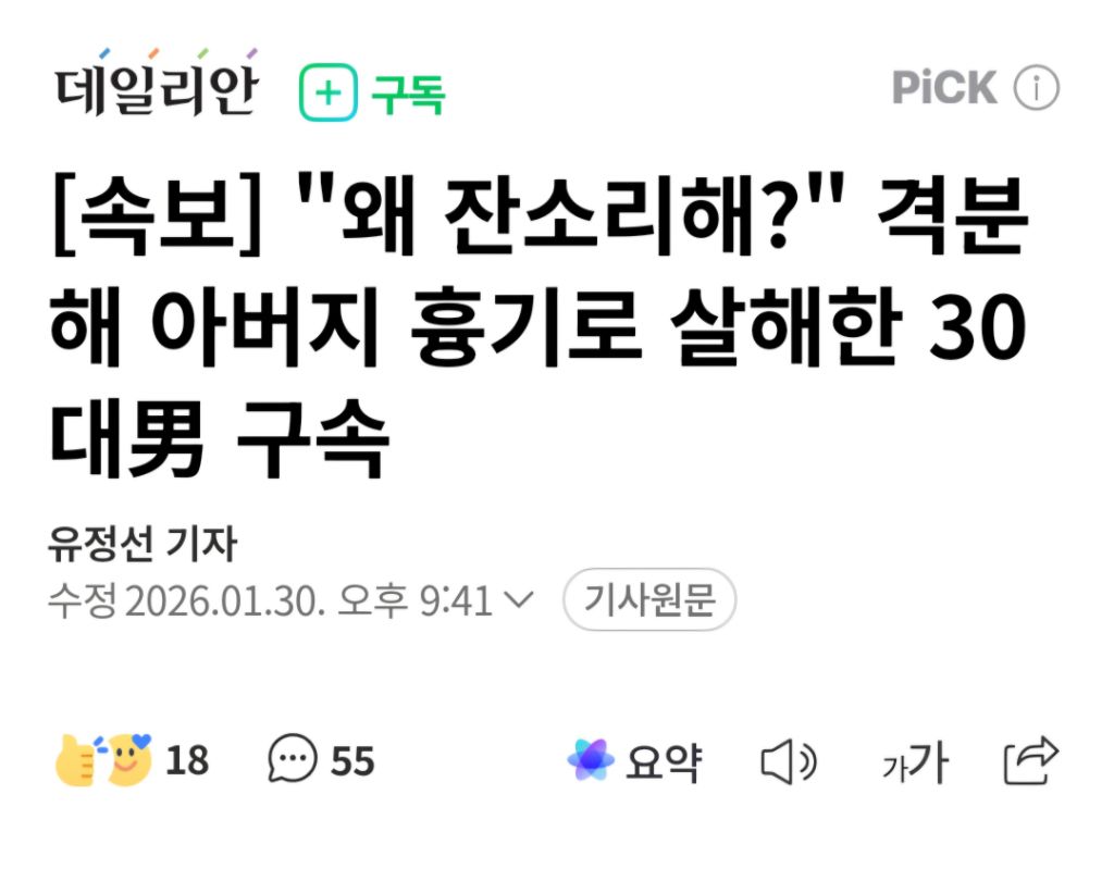 작성자진정성 작성시간 26.01.30 패륜범죄는 자세한 내막 나오기 전까진 언급안하는게 맞음