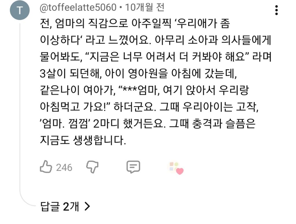 작성자이유비 작성시간 26.01.31 첫째가 말이 느렸음 셋째도 비슷