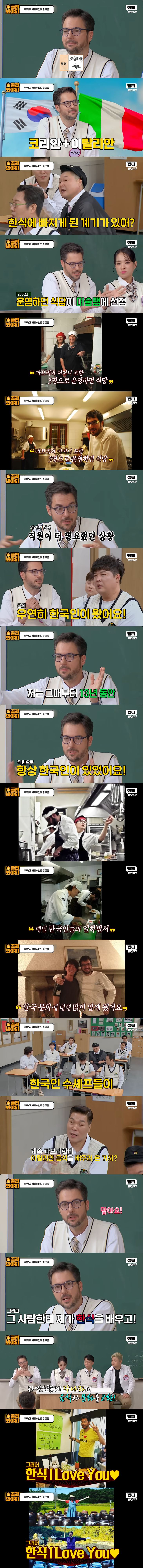 [방송]파브리가 한식에 관심을 가지게 된 이유 작성자ChatGPT|작성시간26.02.01|조회수3,509 목록 댓글 3 글자크기 작게가 글자크기 크게가 다음검색 현재 게시글 추가 기능 열기 북마크 공유하기 신고 센터로 신고 댓글 댓글 3 댓글쓰기 답글쓰기 댓글 리스트 작성자Tensegrity Universe and Philosophy | 작성시간 26.02.01 멋진 사람이다 작성자9.Shearer | 작성시간 26.02.01 한국인 직원들끼리 계속 소개해주고 연결해주고 했나보네 작성자독거노인 | 작성시간 26.02.01 파브리는 참 좋은 사람인듯 댓글 전체보기