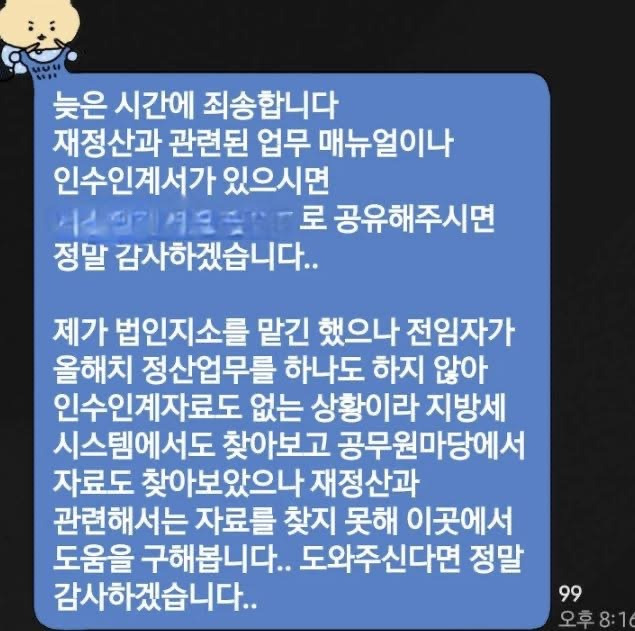 작성자께께오톡 작성시간 26.02.02 직장인 된지 햇수로 9년째에 업무 달라진게 대략 7번인데 인수인계라는걸 한번밖에 못받아봐서 누구보다 저 마음 잘 앎