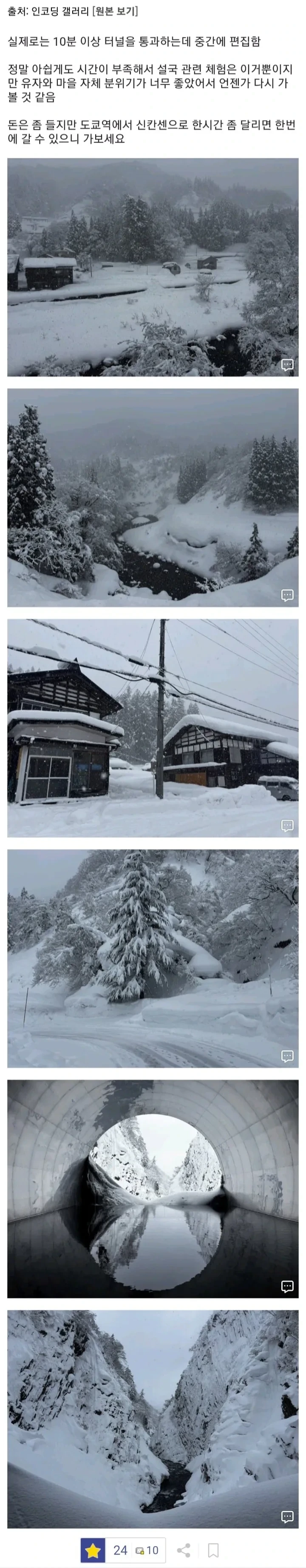 작성자가갸거겨고교 작성시간 26.02.02 저도 도쿄에서 신칸센타고 에치고유자와역 료칸 방문했는데 정말 긴 터널 하나 지나자마자 거짓말같이 설원으로 바뀌더라고요 ㅎㅎㅎ