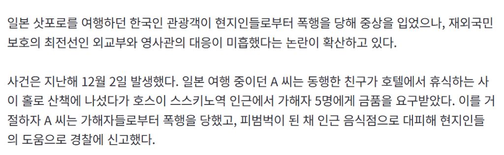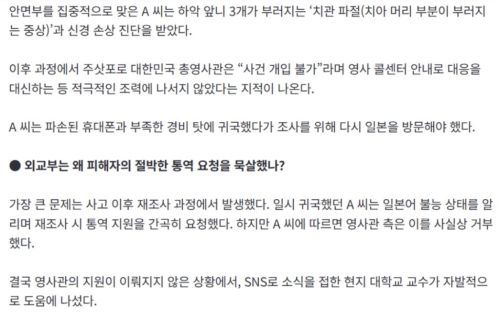 작성자심심할때들어옴 작성시간 26.02.02 솔직히 이 정도 일까지 영사관이 나서서 도와주면, 민원이 너무 많을 것 같은데...