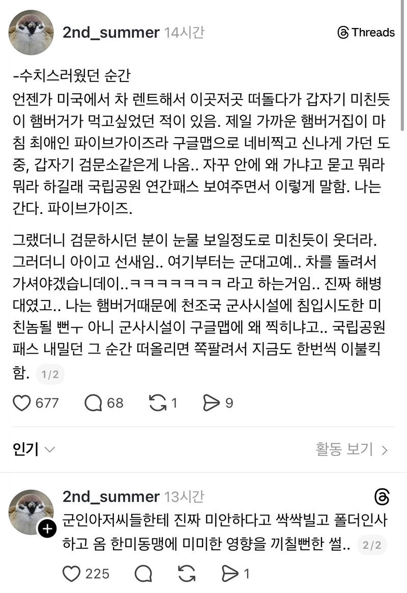미국 여행하다 햄버거 가게가려는데 제지당함.jpg 작성자Google|작성시간26.02.02|조회수35,262 목록 댓글 9 글자크기 작게가 글자크기 크게가 미군부대에 있는 파이브가이즈 침략시도한 한국인 다음검색 현재 게시글 추가 기능 열기 북마크 공유하기 신고 센터로 신고 댓글 댓글 9 댓글쓰기 답글쓰기 댓글 리스트 작성자JTBC | 작성시간 26.02.02 와 한미동맹 깨려고 작정을 했구나!!! 작성자은돌아놀자 | 작성시간 26.02.02 ㅋㅋㅋㅋㅋㅋㅋㅋ 작성자EDS-1275 | 작성시간 26.02.02 ㅋㅋㅋㅋㅋㅋㅋㅋㅋㅋㅋㅋㅋㅋㅋㅋㅋㅋㅋㅋㅋ 작성자ArsenalFC | 작성시간 26.02.02 군대안에 ㅋㅋㅋㅋㅋ 작성자Rachel Anne McAdams | 작성시간 26.02.02 ㅋㅋㅋㅋㅋㅋㅋ 댓글 전체보기