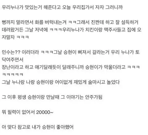 내친구가 우리 큰누나를 짝사랑했어ㄷㄷ 작성자하얀마음흑구|작성시간26.02.03|조회수4,654 목록 댓글 11 글자크기 작게가 글자크기 크게가 어? 다음검색 현재 게시글 추가 기능 열기 북마크 공유하기 신고 센터로 신고 댓글 댓글 11 댓글쓰기 답글쓰기 댓글 리스트 작성자피버노바 | 작성시간 26.02.03 ㅋㅋㅋㅋㅋㅋㅋㅋㅋㅋㅋㅋㅋㅋㅋㅋㅋ 작성자정예린 | 작성시간 26.02.03 작성자랩퍼싸박 | 작성시간 26.02.03 ㅡㅡ 작성자이나경 | 작성시간 26.02.03 작성자웰컴투주라식파크 | 작성시간 26.02.03 아 맞다 댓글 전체보기