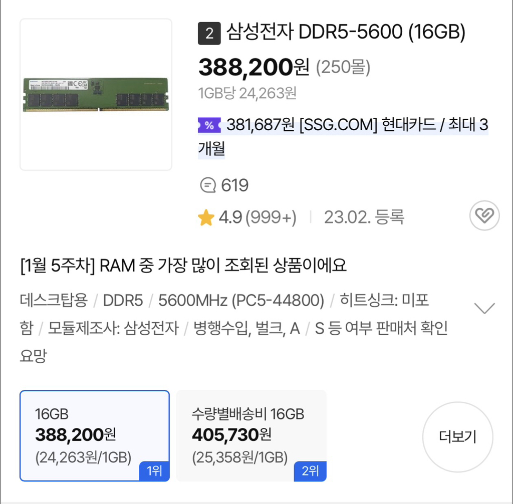 현시점 메모리 반도체가격 상승으로인해
