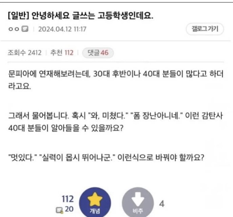 3040 대상으론 님짱굿 이런말 써야죠.