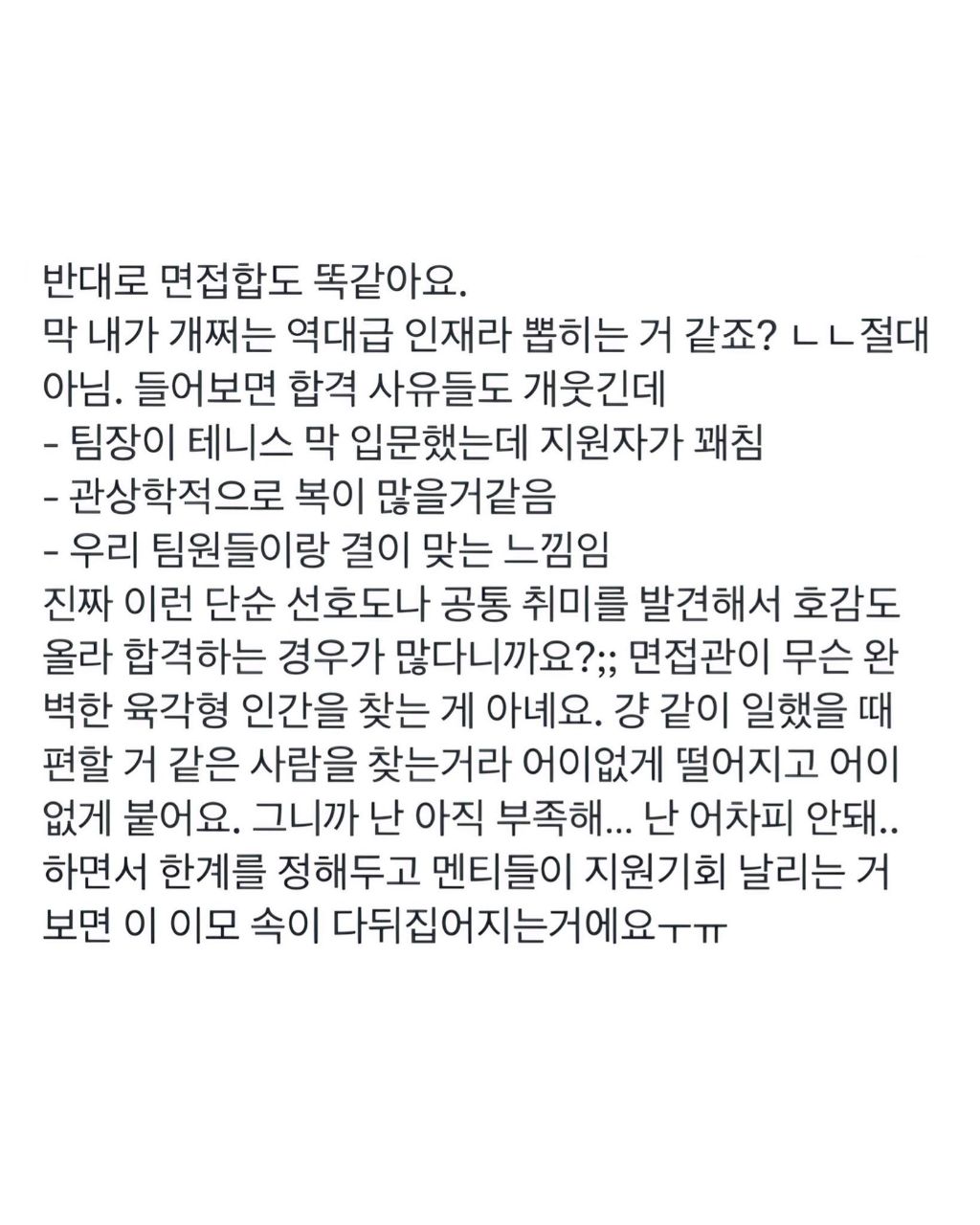 면접은 진짜 똥만 안싸면...