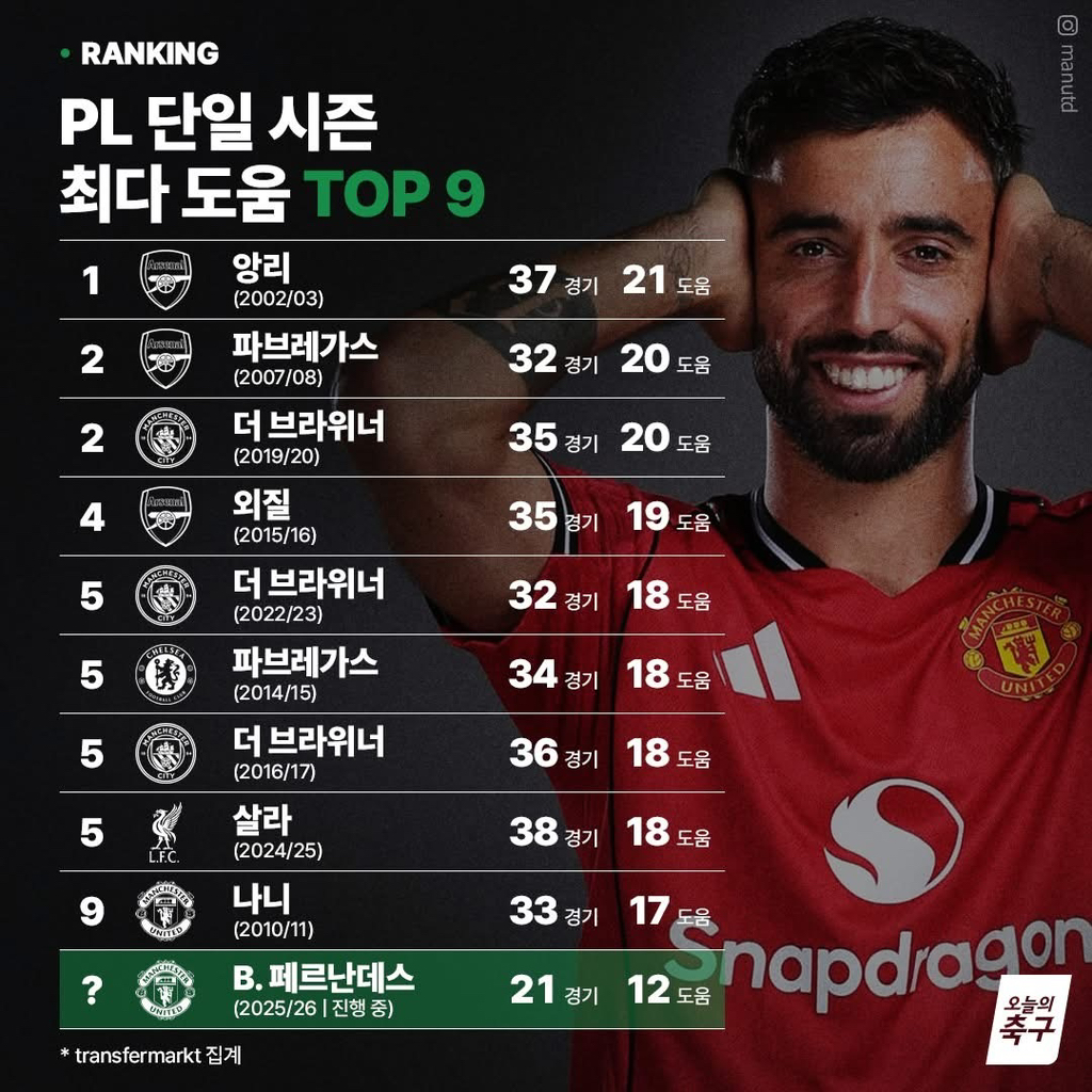 PL 단일 시즌 최다 도움 순위 작성자가을날4|작성시간26.02.06|조회수2,013 목록 댓글 5 글자크기 작게가 글자크기 크게가 출처 오늘의 해외축구 다음검색 현재 게시글 추가 기능 열기 북마크 공유하기 신고 센터로 신고 댓글 댓글 5 댓글쓰기 답글쓰기 댓글 리스트 작성자Chrissy Costanza | 작성시간 26.02.06 부상으로 잠깐 빠졌던게 아숩네 작성자김민주 | 작성시간 26.02.06 앙형ㄷㄷ 작성자한화 이글스 | 작성시간 26.02.06 외질은 진짜 월콧, 웰벡, 지루가 뱉뱉한 거만 생각하면... 작성자Saints | 작성시간 26.02.06 세스크랑 덕배 ㄷㄷ 작성자디발라 | 작성시간 26.02.06 세스크 ㄷㄷ 댓글 전체보기