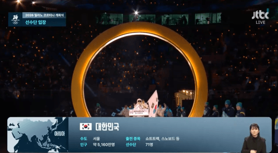 [스포츠][동계올림픽 개막식] 대한민국 선수단 입장.gif 작성자음교수|작성시간26.02.07|조회수3,744 목록 댓글 2 글자크기 작게가 글자크기 크게가 다음검색 현재 게시글 추가 기능 열기 북마크 공유하기 신고 센터로 신고 댓글 댓글 2 댓글쓰기 답글쓰기 댓글 리스트 작성자Real Reds | 작성시간 26.02.07 작성자치타 | 작성시간 26.02.07 댓글 전체보기