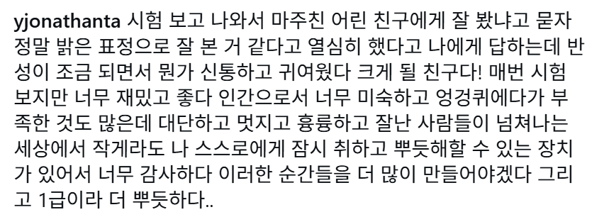 [SNS]한국사 1급 시험 본 조나단 인스타 작성자서스날|작성시간26.02.07|조회수4,763 목록 댓글 2 글자크기 작게가 글자크기 크게가 다음검색 현재 게시글 추가 기능 열기 북마크 공유하기 신고 센터로 신고 댓글 댓글 2 댓글쓰기 답글쓰기 댓글 리스트 작성자H_Crespo | 작성시간 26.02.07 오 1급은 된건가!! 작성자레종아이스프레소 | 작성시간 26.02.07 아직 귀화 안했나?? 댓글 전체보기