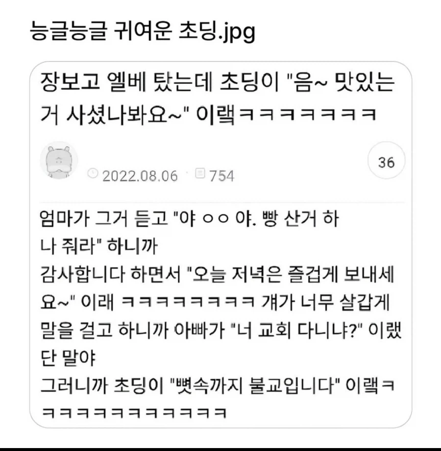 능글능글 귀여운 초딩.jpg 작성자삼베옷|작성시간26.02.08|조회수11,402 목록 댓글 2 글자크기 작게가 글자크기 크게가 다음검색 현재 게시글 추가 기능 열기 북마크 공유하기 신고 센터로 신고 댓글 댓글 2 댓글쓰기 답글쓰기 댓글 리스트 작성자령채 | 작성시간 26.02.08 저런 건 타고 나는 건가 넘 부럽당 작성자밀키스 | 작성시간 26.02.08 ㅋㅋㅋㅋㅋㅋ 댓글 전체보기