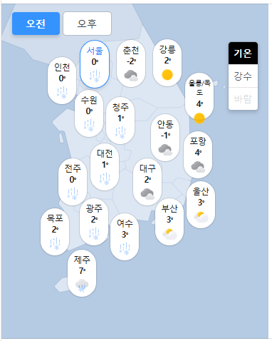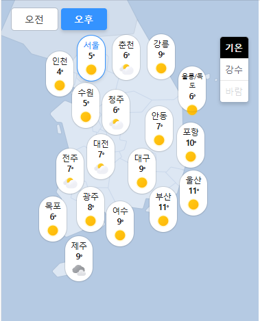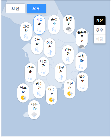 [정보]겨울 추위 끝난듯한 다음주 전국 날씨 예보.jpg 작성자탱구|작성시간26.02.08|조회수5,410 목록 댓글 11 글자크기 작게가 글자크기 크게가 9일 월 10일 화 11일 수 12일 목 13일 금 14일 토 다음검색 현재 게시글 추가 기능 열기 북마크 공유하기 신고 센터로 신고 댓글 댓글 11 댓글쓰기 답글쓰기 댓글 리스트 작성자인생은타이밍 | 작성시간 26.02.08 ㅅㅅㅅㅅㅅ 작성자모과차 | 작성시간 26.02.08 겨울 안녕 봄 안녕 작성자빨간망토 챠챠 | 작성시간 26.02.08 겨울아 가지마.. 작성자은하 | 작성시간 26.02.08 아쉽네 작성자Cody Rhodes | 작성시간 26.02.09 눈오지마 댓글 전체보기
