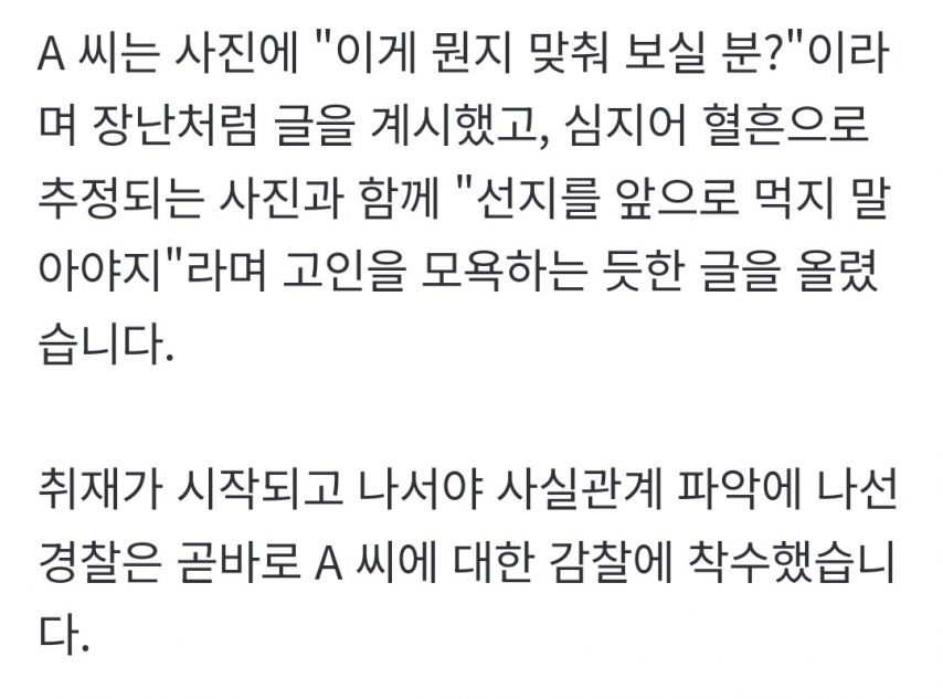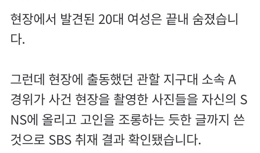 [기사]길에서 피 흘리며 숨진 변사자 조롱 글 인스타에 올린 경찰.jpg 작성자강동구주민 3|작성시간26.02.09|조회수7,499 목록 댓글 38 글자크기 작게가 글자크기 크게가 다음검색 현재 게시글 추가 기능 열기 북마크 공유하기 신고 센터로 신고 댓글 댓글 38 댓글쓰기 답글쓰기 댓글 리스트 작성자Daniel Agger | 작성시간 26.02.10 ㅁㅊ새기네 작성자ㅈㅈ | 작성시간 26.02.10 격리해야.. 작성자손세이셔널 | 작성시간 26.02.10 무섭다 진짜… 작성자에당아짜루 | 작성시간 26.02.10 진짜 개쓰레기네 ㅉㅉ근데 자꾸 계시 <- 가 거슬린다 ㅠㅠ 작성자I.B.I LUV | 작성시간 26.02.10 짤라야 하는 거 아니냐.... 뭔 시체 앞에서 저딴짓을.... 댓글 전체보기