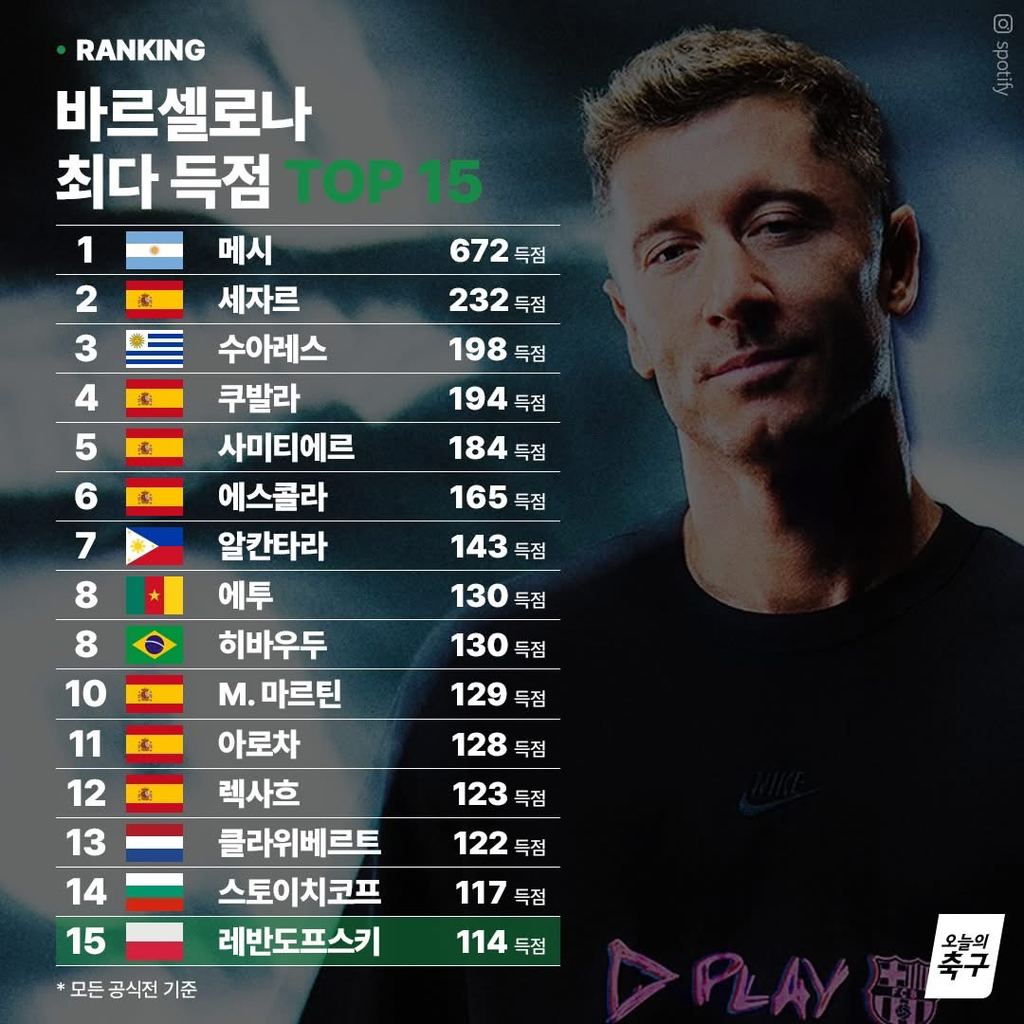 바르셀로나 최다 득점 순위 작성자가을날4|작성시간26.02.10|조회수2,542 목록 댓글 5 글자크기 작게가 글자크기 크게가 출처 오늘의 해외축구 다음검색 현재 게시글 추가 기능 열기 북마크 공유하기 신고 센터로 신고 댓글 댓글 5 댓글쓰기 답글쓰기 댓글 리스트 작성자구구 | 작성시간 26.02.10 레비도 30대에 왔는데 참 대단,, 작성자Tove Styrke | 작성시간 26.02.10 결과론이지만 뭔헨 시절을 바르셀로나에서 보냈으면 2위는 따논 당상이였겠군요 ㄷ 작성자하빵 | 작성시간 26.02.10 메갓은 누구도 영원히 못깬다 봐야 작성자빡빡이 | 작성시간 26.02.10 히바우두 오랜만에 본다 작성자호날도인 | 작성시간 26.02.10 와 메시 보소 ㅋㅋㅋㅋㅋㅋㅋ 댓글 전체보기