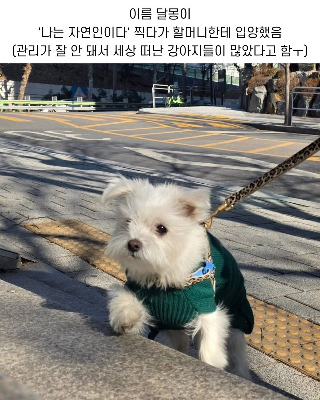 촬영하다 만난 반려견 작성자가을날4|작성시간26.02.10|조회수14,123 목록 댓글 6 글자크기 작게가 글자크기 크게가 윤택아! 달몽이 말 잘 듣고 행복해야 한다! 다음검색 현재 게시글 추가 기능 열기 북마크 공유하기 신고 센터로 신고 댓글 댓글 6 댓글쓰기 답글쓰기 댓글 리스트 작성자Farrokh Bulsara | 작성시간 26.02.10 윤택 저 분 사람이 괜찮은 분 같음. 작성자고우림 | 작성시간 26.02.10 달몽이도 귀엽고 윤택도 귀엽고 작성자임화영 | 작성시간 26.02.10 작성자NO5 오스마르 | 작성시간 26.02.10 아이 너무 예쁘다 작성자밀키스 | 작성시간 26.02.10 진짜넘귀엽다 ㅜ 댓글 전체보기