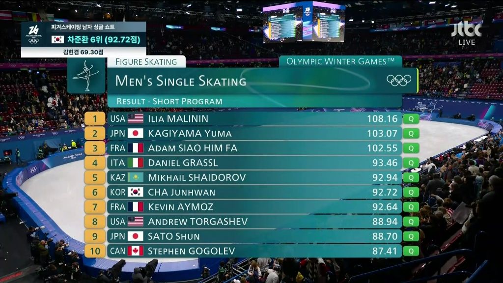 [스포츠]차준환 쇼트 6위(프리 마지막 그룹 입성).jpg 작성자별나들이|작성시간26.02.11|조회수9,120 목록 댓글 4 글자크기 작게가 글자크기 크게가 차준환 경기 영상(시즌베스트 점수 기록)동계올림픽'차준환이 차준환 했다' 감탄이 나오는 차준환의 연기tv.naver.com 다음검색 현재 게시글 추가 기능 열기 북마크 공유하기 신고 센터로 신고 댓글 댓글 4 댓글쓰기 답글쓰기 댓글 리스트 작성자인생은타이밍 | 작성시간 26.02.11 와 1,2,3 점수가 ㄷㄷㄷ 답댓글 작성자별나들이 작성자 본인 여부 작성자 | 작성시간 26.02.11 날아다니더라고요 ㄷㄷㄷ 작성자오스카 아이작 | 작성시간 26.02.11 차준환 더 받았어야 맞지 3그룹이라고 점수 짜게줌 작성자즐거운세상 | 작성시간 26.02.11 잘했다 댓글 전체보기