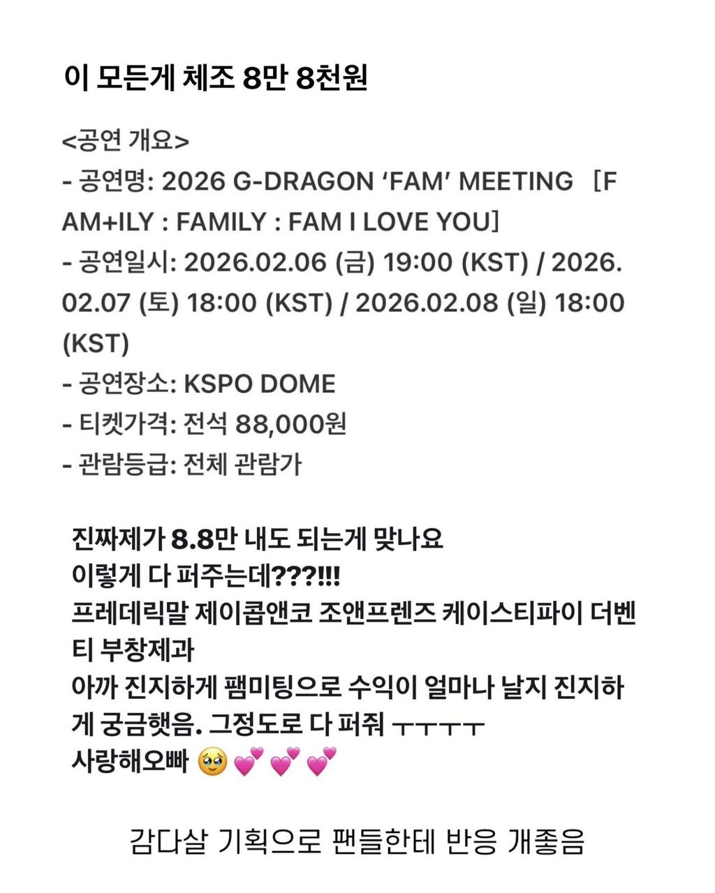 억소리 났던 지드래곤 팬미팅 역조공 클래스 작성자가을날4|작성시간26.02.13|조회수6,917 목록 댓글 3 글자크기 작게가 글자크기 크게가 다음검색 현재 게시글 추가 기능 열기 북마크 공유하기 신고 센터로 신고 댓글 댓글 3 댓글쓰기 답글쓰기 댓글 리스트 작성자스티키 | 작성시간 26.02.13 개혜자네 작성자피카츄 | 작성시간 26.02.13 크 작성자Andrey arshavin | 작성시간 26.02.13 ㅁㅊ ㄷㄷ 댓글 전체보기