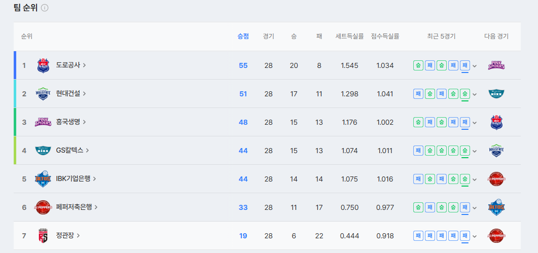 현재 순위 7위 꼴등