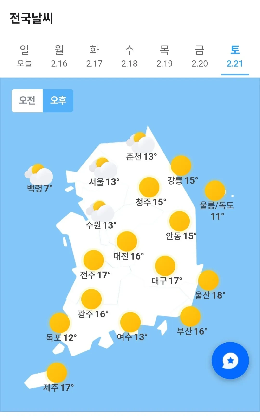 [기타]다음주 토요일 낮기온 작성자rade bogdanovic|작성시간26.02.15|조회수5,521 목록 댓글 5 글자크기 작게가 글자크기 크게가 다음검색 현재 게시글 추가 기능 열기 북마크 공유하기 신고 센터로 신고 댓글 댓글 5 댓글쓰기 답글쓰기 댓글 리스트 작성자정예린 | 작성시간 26.02.15 겨울 잘가 작성자블랙 | 작성시간 26.02.15 겨울 잘가라.... 작성자강호동 | 작성시간 26.02.15 봄이구나 작성자이나경 | 작성시간 26.02.15 봄이 오나보오.. 작성자그래도아직은탱구 | 작성시간 26.02.15 ㄷㄷ 댓글 전체보기
