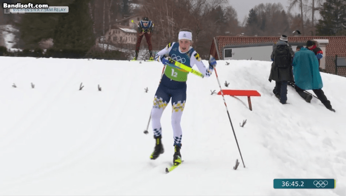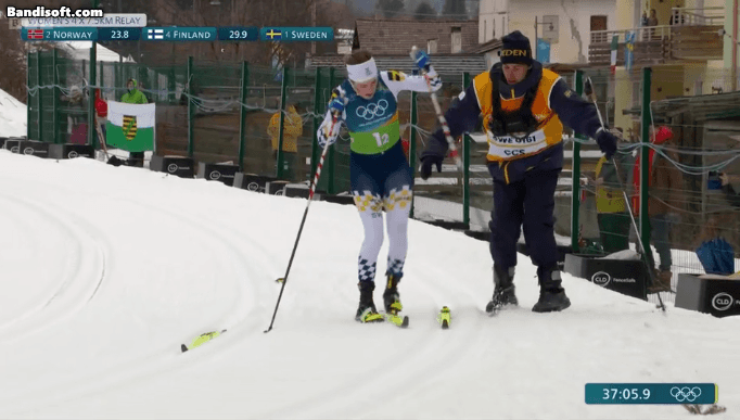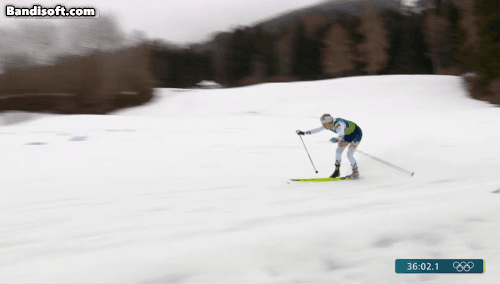 스웨덴 선수가 내리막 가는 도중 세게 걸려 넘어지면서 한쪽 스키가 빠짐