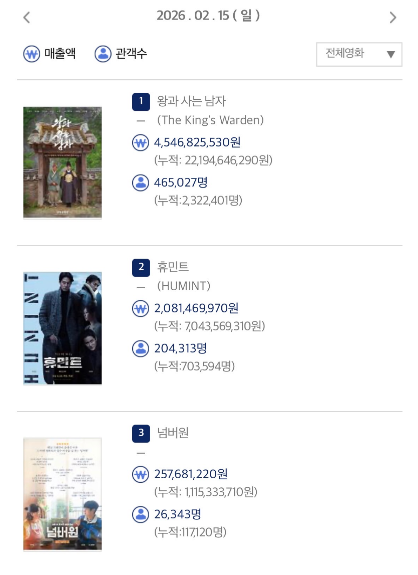 작성자제갈량 공명 작성시간 26.02.16 왕과사는남자가 그나마 전 연령대가 부담없이 보기엔 나을듯