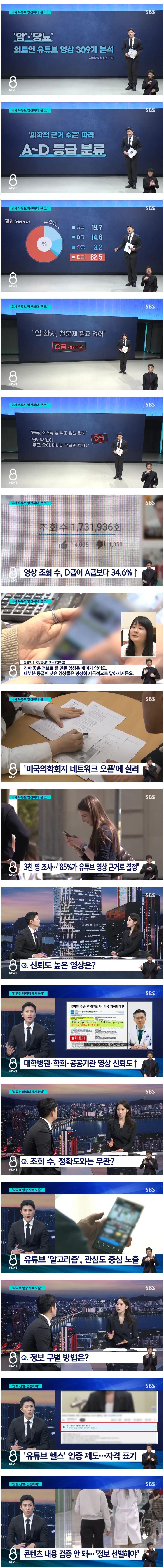 의료인 유튜브 영상 309개를 분석한 결과 D등급이 62.5%