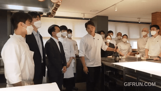 팀원들에게 이 소식을 전하는 안성재 셰프