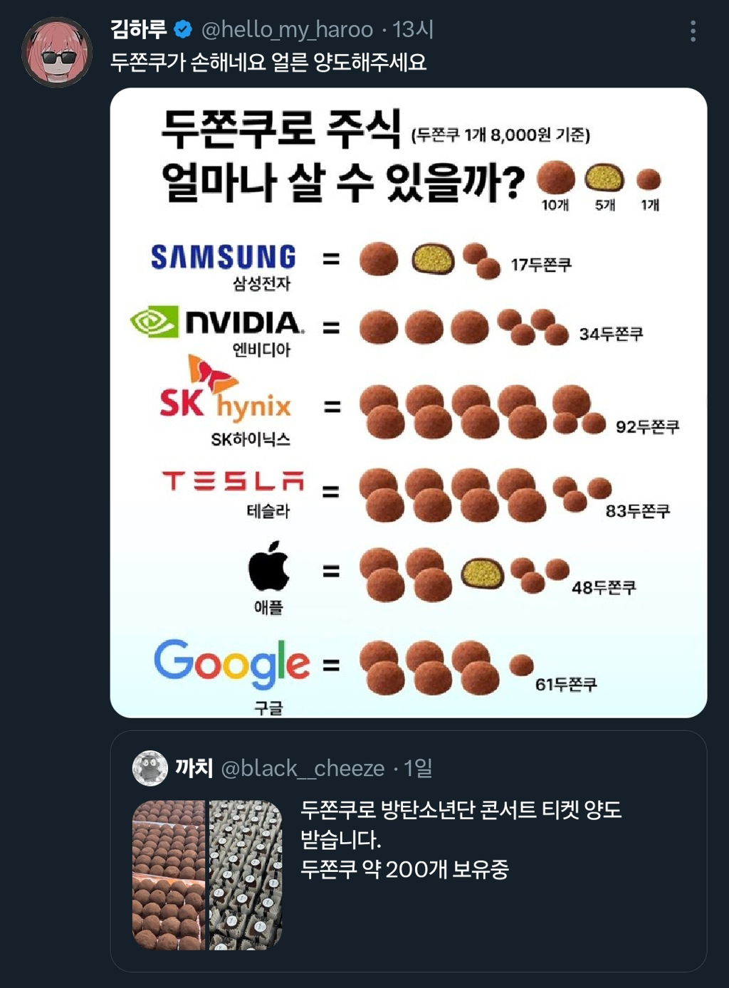[기타]두쫀쿠 200개로 방탄소년단 콘서트 티켓 구하는 중인 팬 작성자피카츄|작성시간26.02.17|조회수6,327 목록 댓글 3 글자크기 작게가 글자크기 크게가 출처 트위터 다음검색 현재 게시글 추가 기능 열기 북마크 공유하기 신고 센터로 신고 댓글 댓글 3 댓글쓰기 답글쓰기 댓글 리스트 작성자이나경 | 작성시간 26.02.17 ㄷㄷㄷ 작성자우냉 | 작성시간 26.02.17 그만좀해 ㅜㅜ 작성자부산아이파크 | 작성시간 26.02.17 200개랑 바꾼 사람 바로 당근으로 되팔거같은데 ㅋㅋ 댓글 전체보기