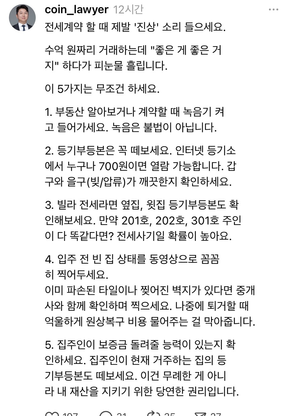 답댓글 작성자Starbucks 작성시간 26.02.18 SUNG 아 하긴, 계약서에 집주인주소도 당연히 나와있겠네요 괜한 말을 했네요