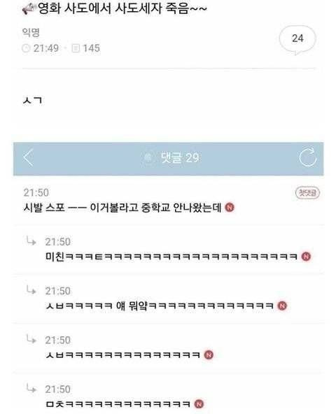 영화 사도세자 스포 레전드 jpg 작성자블랙|작성시간26.02.18|조회수5,479 목록 댓글 2 글자크기 작게가 글자크기 크게가 다음검색 현재 게시글 추가 기능 열기 북마크 공유하기 신고 센터로 신고 댓글 댓글 2 댓글쓰기 답글쓰기 댓글 리스트 작성자諦めない | 작성시간 26.02.18 초딩때도 배우지 않나.. 작성자롭슨 | 작성시간 26.02.18 ㅋㅋㅋㅋㅋㅋㅋㅋㅋㅋ 댓글 전체보기