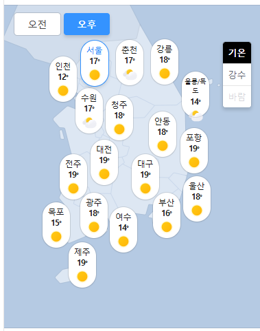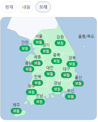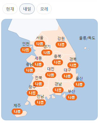 [정보]이번주 주말 전국 날씨 기온, 미세먼지 상황.jpg 작성자탱구|작성시간26.02.20|조회수5,636 목록 댓글 6 글자크기 작게가 글자크기 크게가 21일 토 미세먼지 초미세먼지 22일 일 미세먼지 초미세먼지 다음검색 현재 게시글 추가 기능 열기 북마크 공유하기 신고 센터로 신고 댓글 댓글 6 댓글쓰기 답글쓰기 댓글 리스트 작성자블루윙즈지킴이 | 작성시간 26.02.20 ㅈ세먼지 작성자소소비2 | 작성시간 26.02.20 내일은 마당에 물좀 줘야겠네 작성자러빗 | 작성시간 26.02.20 따뜻하면 미세먼지가 난리 작성자Andrea Pirlo 21 | 작성시간 26.02.20 내일 낮 기온 ㄷㄷ 작성자정예린2 | 작성시간 26.02.20 댓글 전체보기