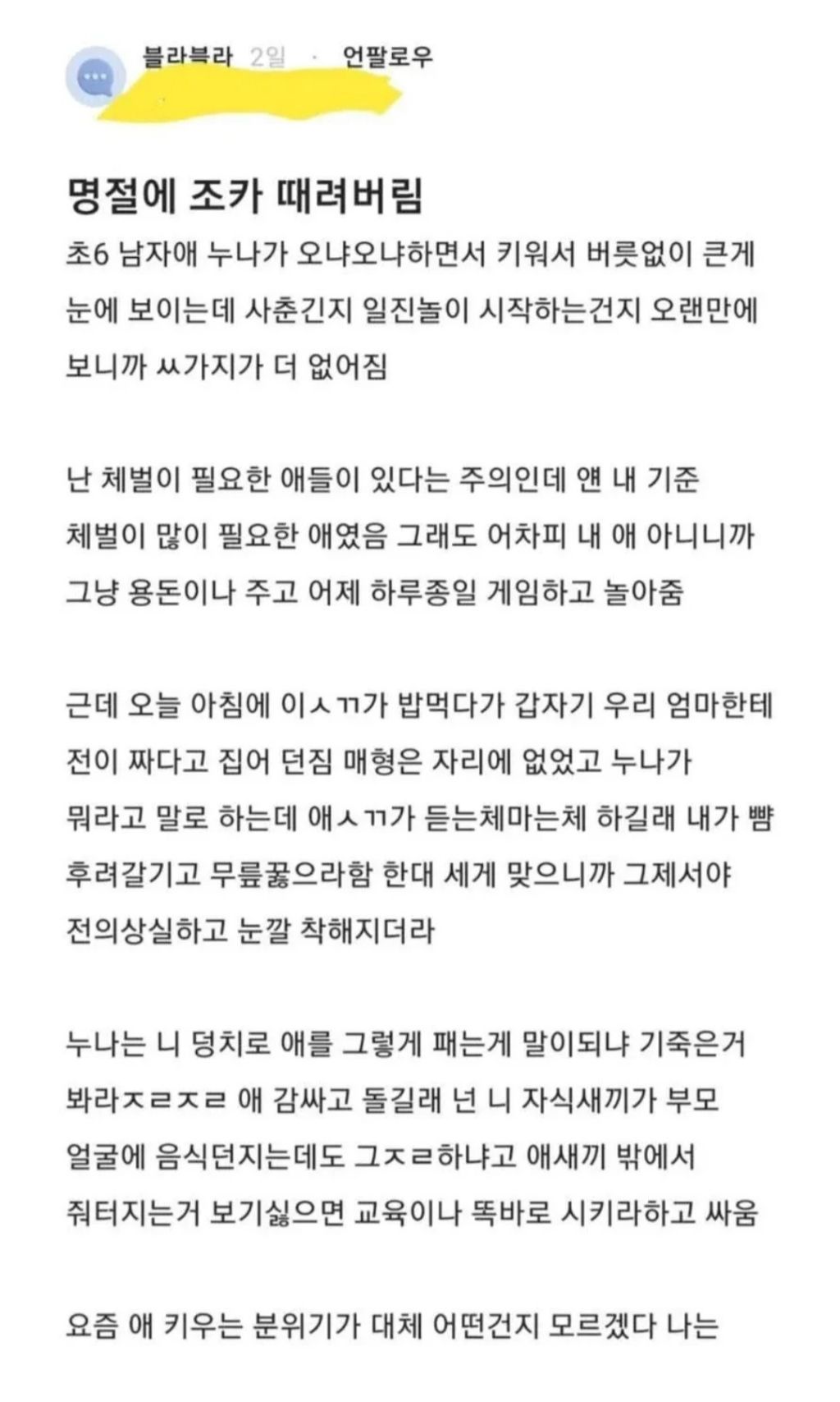 작성자훈이 작성시간 26.02.22 요즘 부모들 왜이러는거임?? 왤케 개념들이 없지?