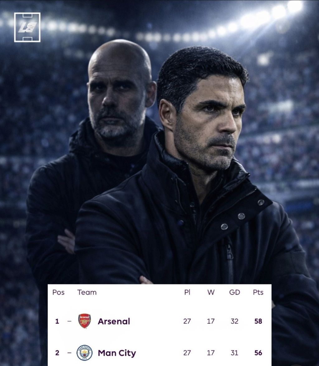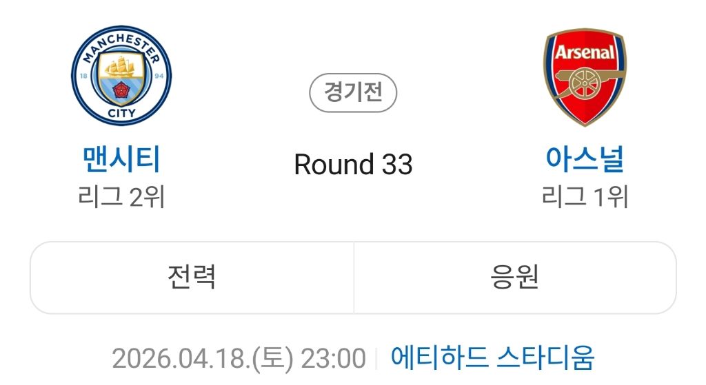 1위 아스날과 승점 2점차