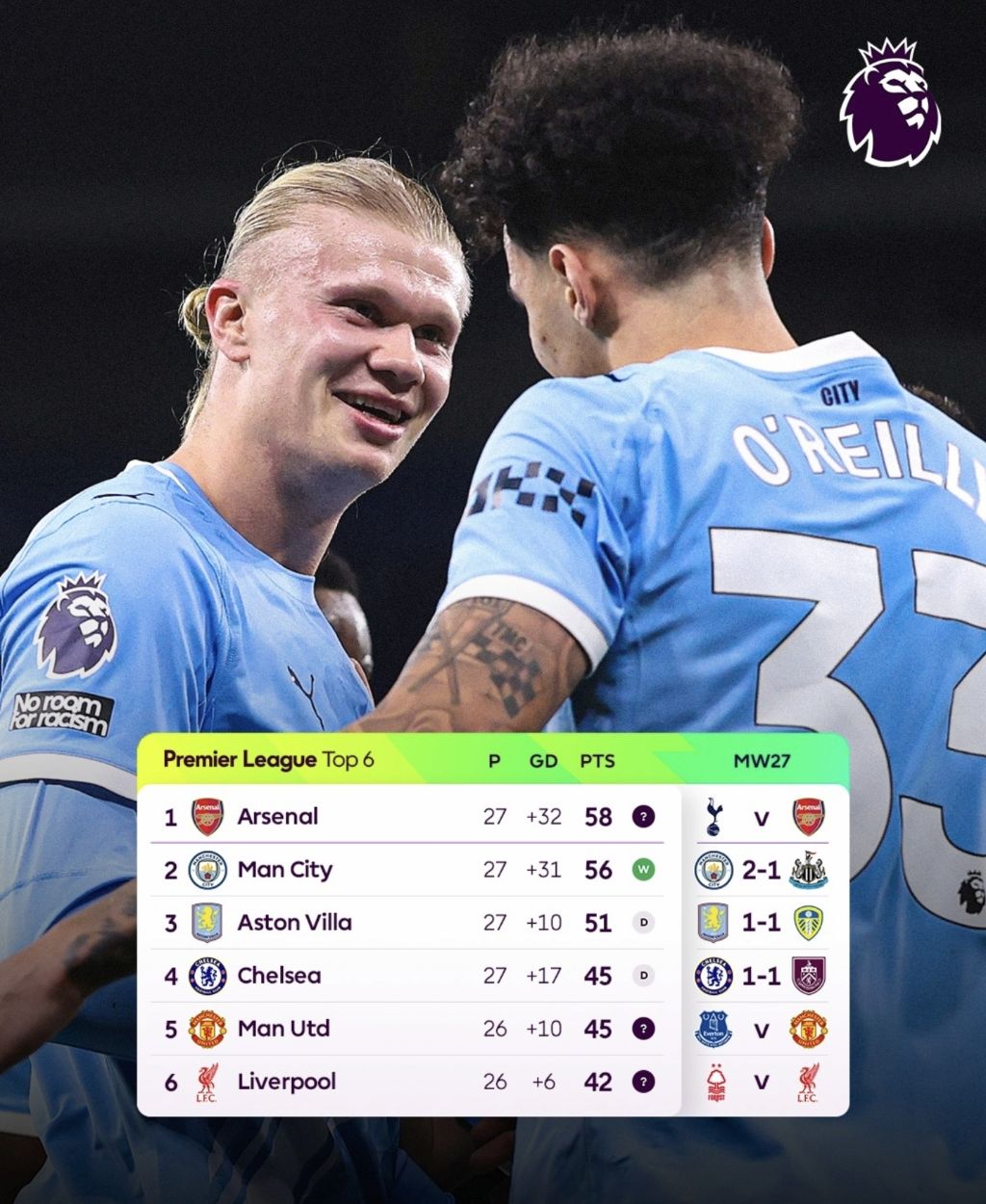 오늘 2위 맨시티가 뉴캐슬을 이기면서